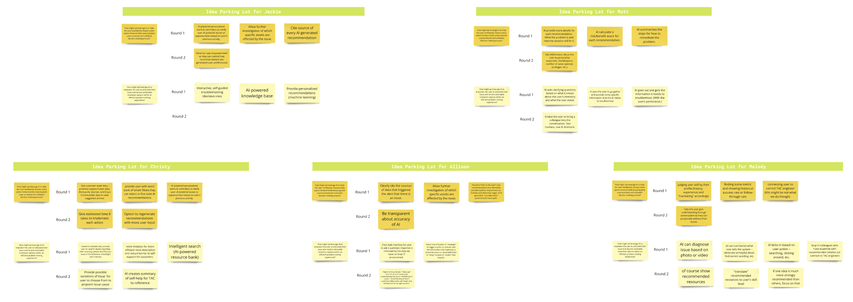 We created an idea board through several rounds of rapid brainstorming