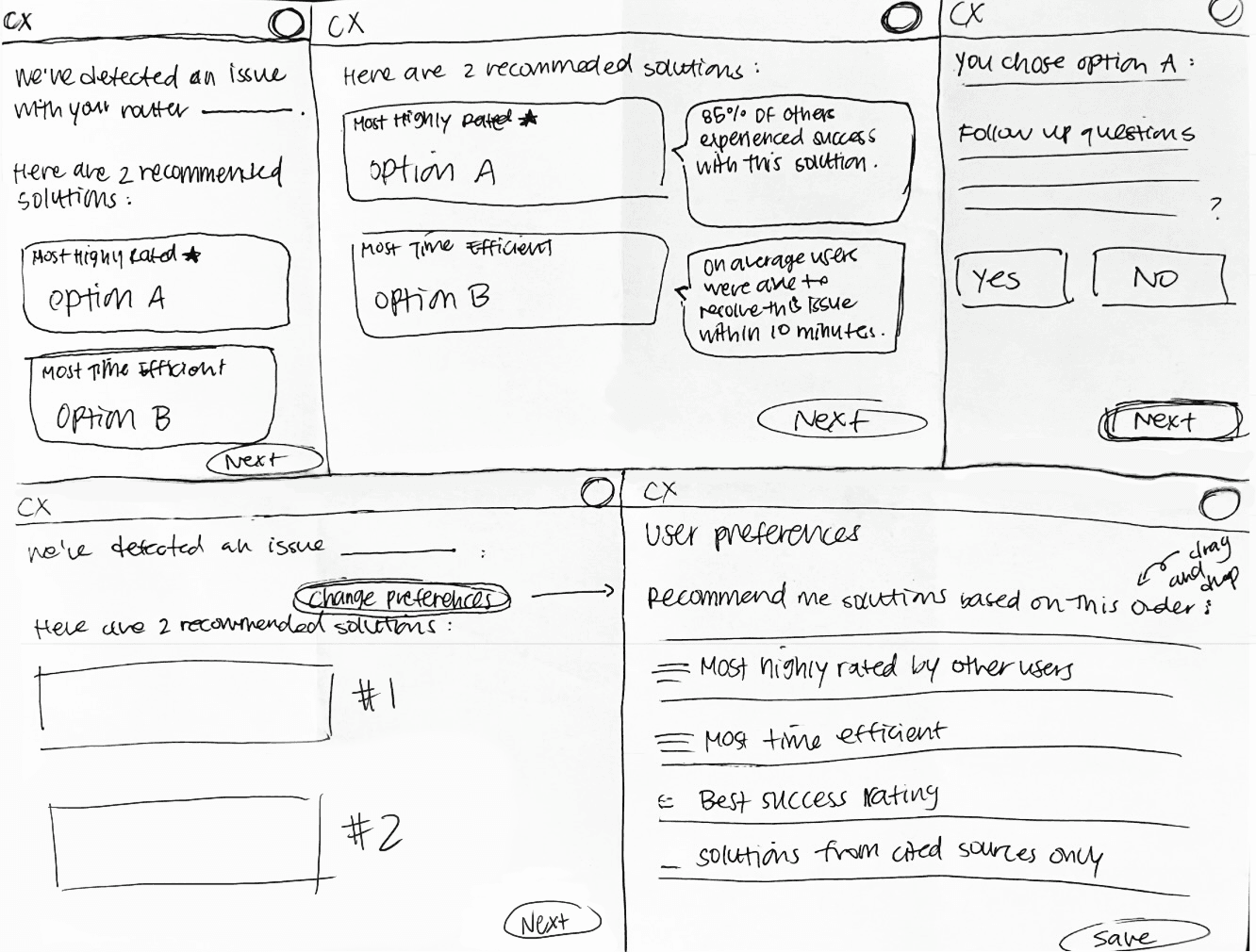 I hosted a design sprint where my team rapidly sketched out solution concepts.