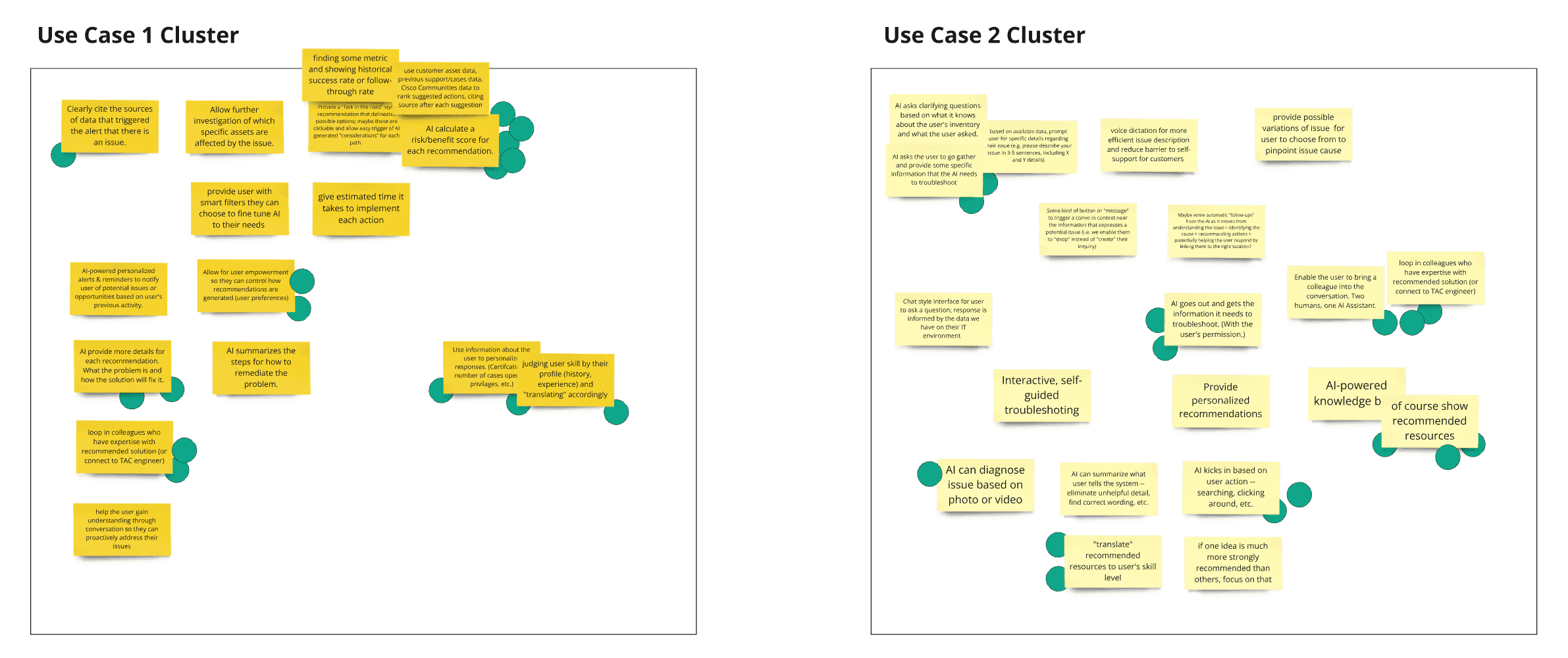 We clustered similar ideas and conducted silent voting, identifying top ideas to further develop.